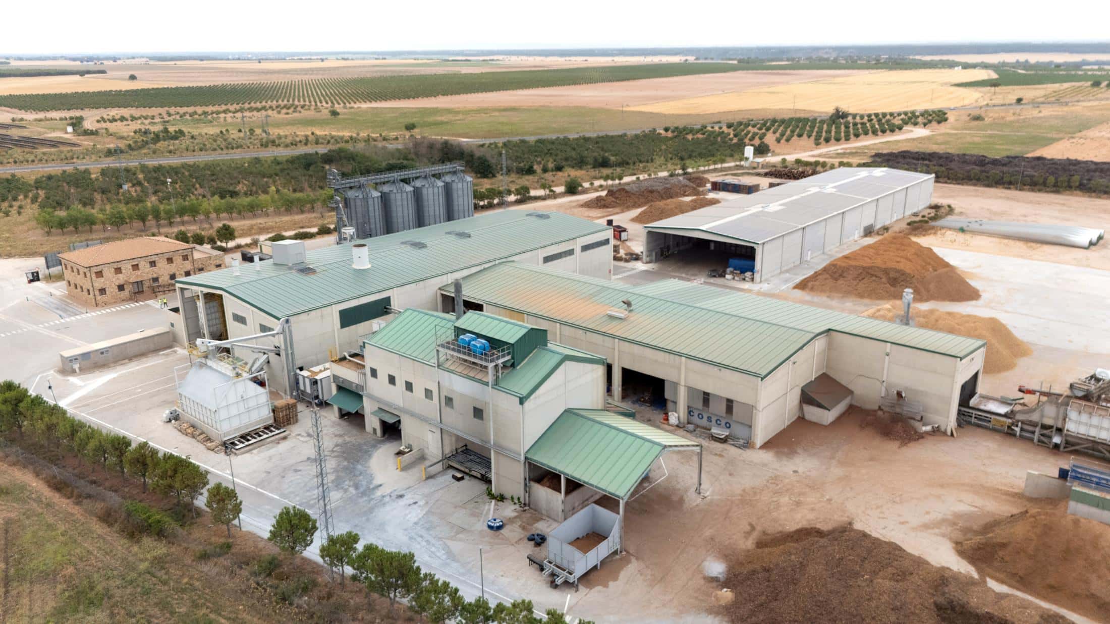 La instalación de Energías Renovables de Tarazona S.A. (Erta) es un claro ejemplo de simbiosis industrial orientada a la descarbonización. La planta está especializada en el aprovechamiento de residuos forestales y agrícolas para la producción de biocombustibles sólidos. En lugar de permitir la quema incontrolada o la descomposición en vertedero de estos restos orgánicos, la planta los procesa, tritura y densifica para producir pellets orgánicos y eficientes. Este proceso reduce la huella de carbono y dota de gran valor a un desecho agrícola y forestal.